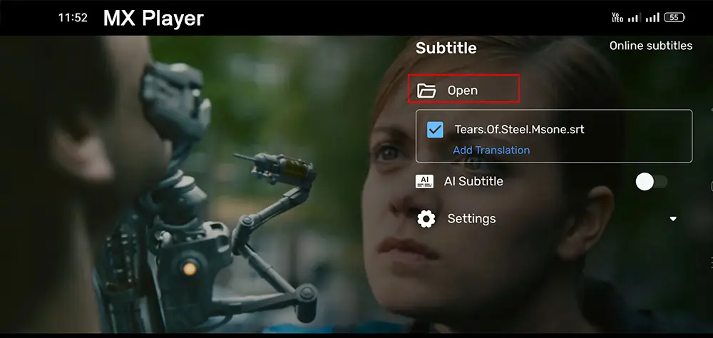 ആൻഡ്രോയഡ് മൊബൈൽ/ഡിവൈസുകളിൽ Mx Player അല്ലെങ്കിൽ Vlc Player ഉപയോഗിക്കാം. പ്ലേസ്റ്റോറിൽ നിന്ന് ഇവയിലൊന്ന് ഡൗൺലോഡ് ചെയ്ത് ഇൻസ്റ്റാൾ ചെയ്യുക. ശേഷം സിനിമയും എംസോൺ സബ്ടൈറ്റിലും ഒരു ഫോൾഡറിൽ ആക്കി സിനിമ പ്ലേ ചെയ്തതിന് ശേഷം ഒപ്ഷനിൽ ക്ലിക്ക് ചെയ്ത് ഓപ്പൺ സബ്ടൈറ്റിൽ കൊടുക്കുക. ഫോണിൽ സബ്ടൈറ്റിൽ ഉള്ള പാത്ത് കാണിച്ചു കൊടുക്കുക.