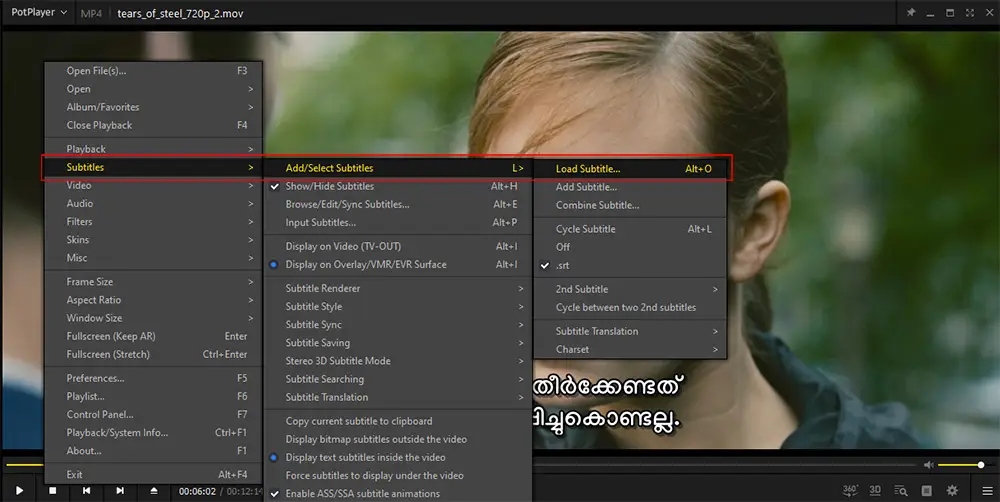 വിൻഡോസ് പിസിയിൽ മലയാളം പരിഭാഷകൾ ഉപയോഗിച്ച് സിനിമ കാണാൻ സിനിമയും പരിഭാഷയും ഒരു ഫോൾഡറിൽ ആണെന്ന് ഉറപ്പാക്കുക, ഇനി KM പ്ലേയറോ Pot പ്ലേയറോ vlc പ്ലേയറോവേണം. vlc പ്ലയര് വെർഷൻ 3.0.9.2 ഓ അതിന് മുകിളിലോ ആണെന്ന് ഉറപ്പാക്കുക. ഇവയിൽ ഏതെങ്കിലും പ്ലേയർ ഇൻസ്റ്റാൾ ചെയ്യുക. എല്ലാം സൗജന്യ സോഫ്റ്റ് വെയറുകളാണ്. സിനിമ പ്ലേ ചെയ്തതിനു ശേഷം എംസോൺ സബ്ടൈറ്റിൽ ഡ്രാഗ് ചെയ്ത് ഇടുകയോ ഓപ്പൺ സബ്ടൈറ്റിൽ ഒപ്ഷൻ കൊടുത്ത് ആഡ് ചെയ്യുകയോ ചെയ്യാം.