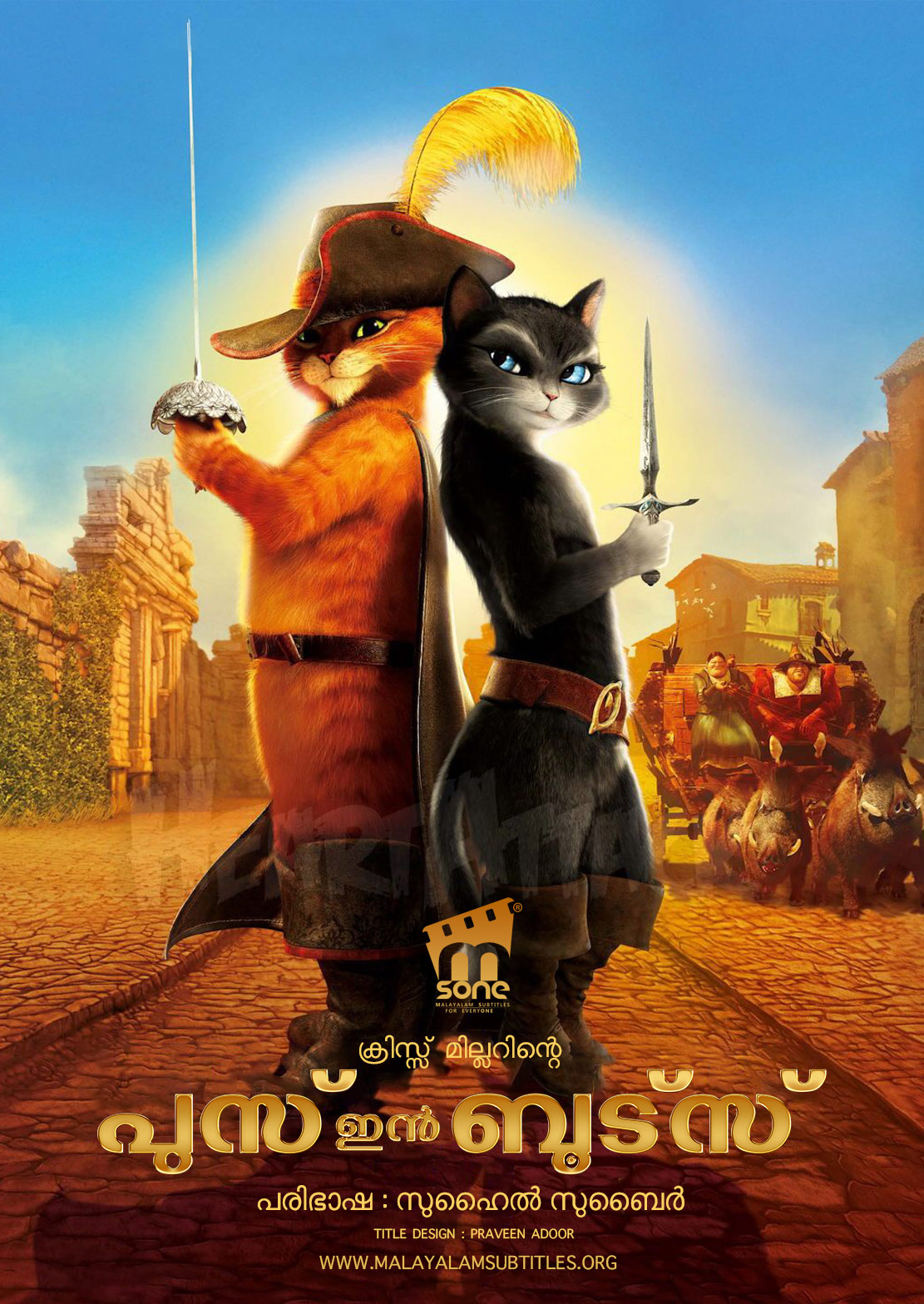 നാടോടിക്കഥകളിലെ ബൂട്ട് ധരിച്ച പൂച്ചയെ കേന്ദ്ര കഥാപാത്രമാക്കി ഡ്രീം വർക്സ് നിർമിച്ച അനിമേഷൻ മൂവി ആണ് പുസ് ഇൻ ബൂട്ട്സ്. മാന്ത്രിക പയറുമണികൾ ഉപയോഗിച്ച് രക്ഷസന്റെ കൊട്ടാരത്തിലെ പൊന്മുട്ടയിടുന്ന താറാവിനെ കൈക്കലാക്കാൻ തന്റെ സുഹൃത്തുക്കളായ ഹംറ്റിയുടെയും കിറ്റിയുടെയും ഒപ്പം പോകുന്നതാണ് സിനിമയുടെ ഇതിവൃത്തം.