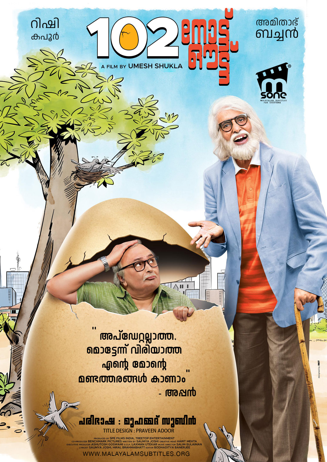 ലോകത്തിലെ ജീവിച്ചിരിക്കുന്ന ഏറ്റവും പ്രായംകൂടിയ മനുഷ്യൻ എന്ന റെക്കോർഡിന് വേണ്ടി ജീവിതം അടിച്ചുപൊളിച്ചു ജീവിക്കുന്ന അച്ഛനെയും, മാനസികമായും ശാരീരികമായും തന്നെ വാർദ്ധക്യം ബാധിച്ചുവെന്ന് സ്വയം ബോധ്യപ്പെടുത്തി വളരെ ചിട്ടയോടെയും കണിശതയോടെയും ജീവിക്കുന്ന മകനെയുമാണ് ഈ ചിത്രത്തിൽ നമുക്ക് കാണാൻ സാധിക്കുക. അച്ഛനായി അമിതാഭ് ബച്ചനും മകനായി ഋഷി കപൂറും മത്സരിച്ചഭിനയിച്ച ഒരു കോമഡി ഡ്രാമയാണ് 102 നോട്ട് ഔട്ട്.